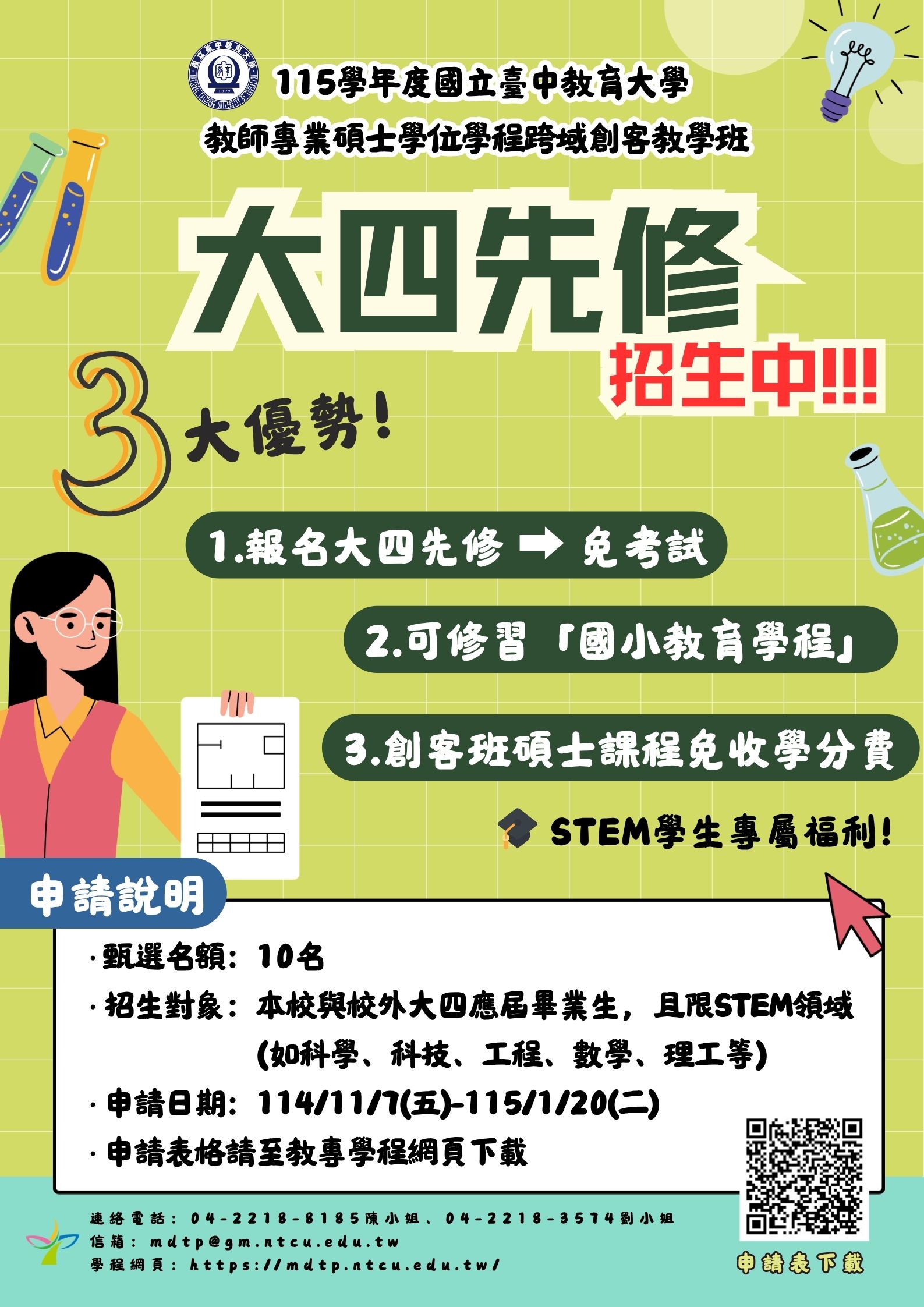 國立臺中教育大學 115學年度教師專業碩士學位學程跨域創客教學班