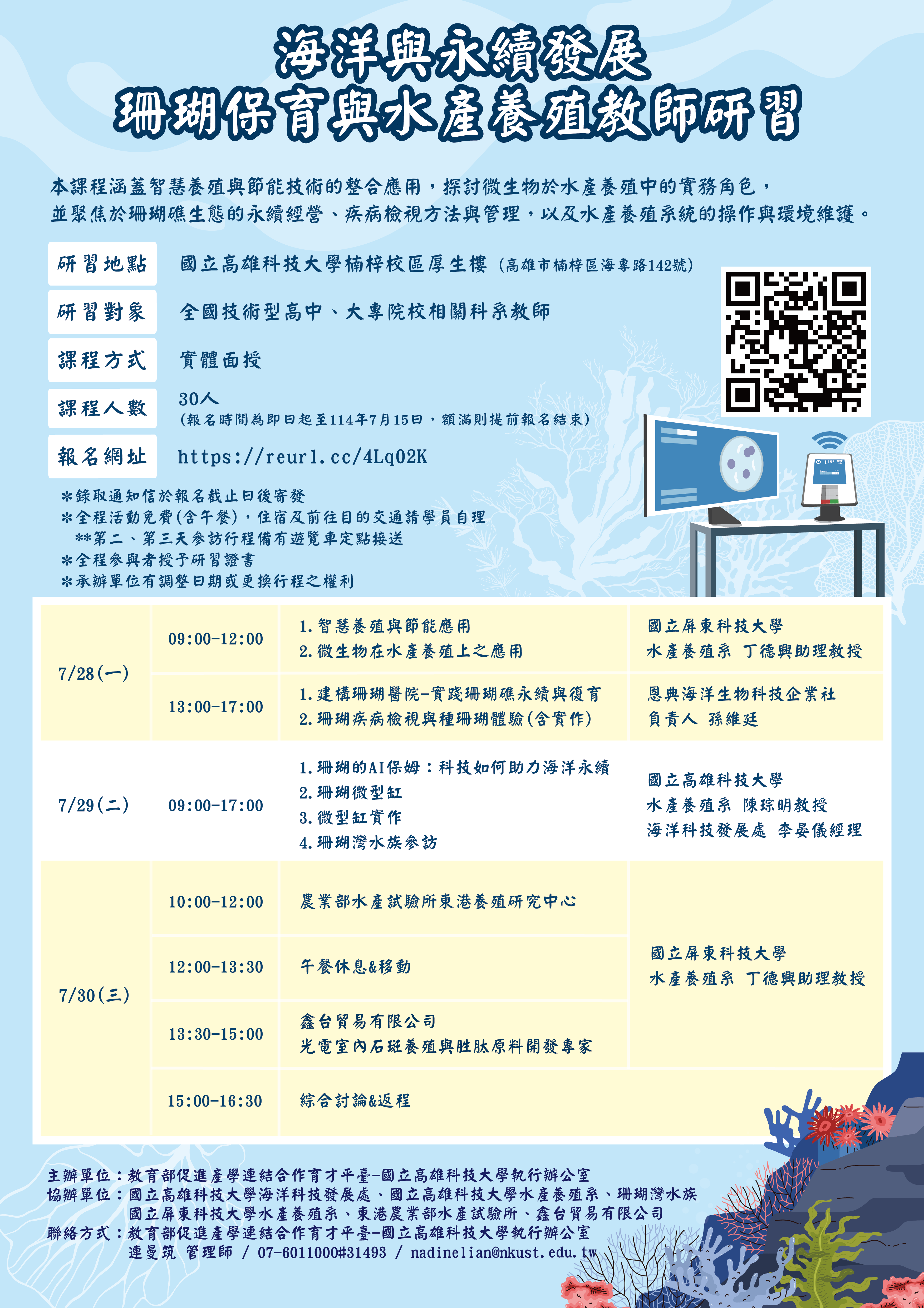 【活動】國立高雄科技大學 「海洋與永續發展:珊瑚保育與水產養殖教師研習」