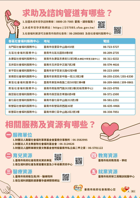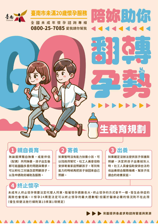 【轉知】臺南市政府社會局 未滿20歲懷孕服務 「陪妳、助你-翻轉孕勢」