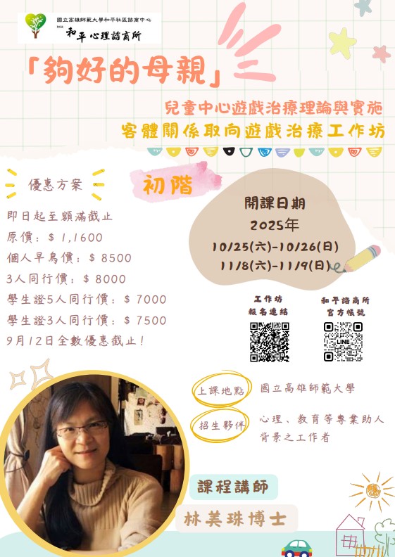 【轉知】高雄師範大學附設和平心理諮商所 客體關係取向遊戲治療工作坊