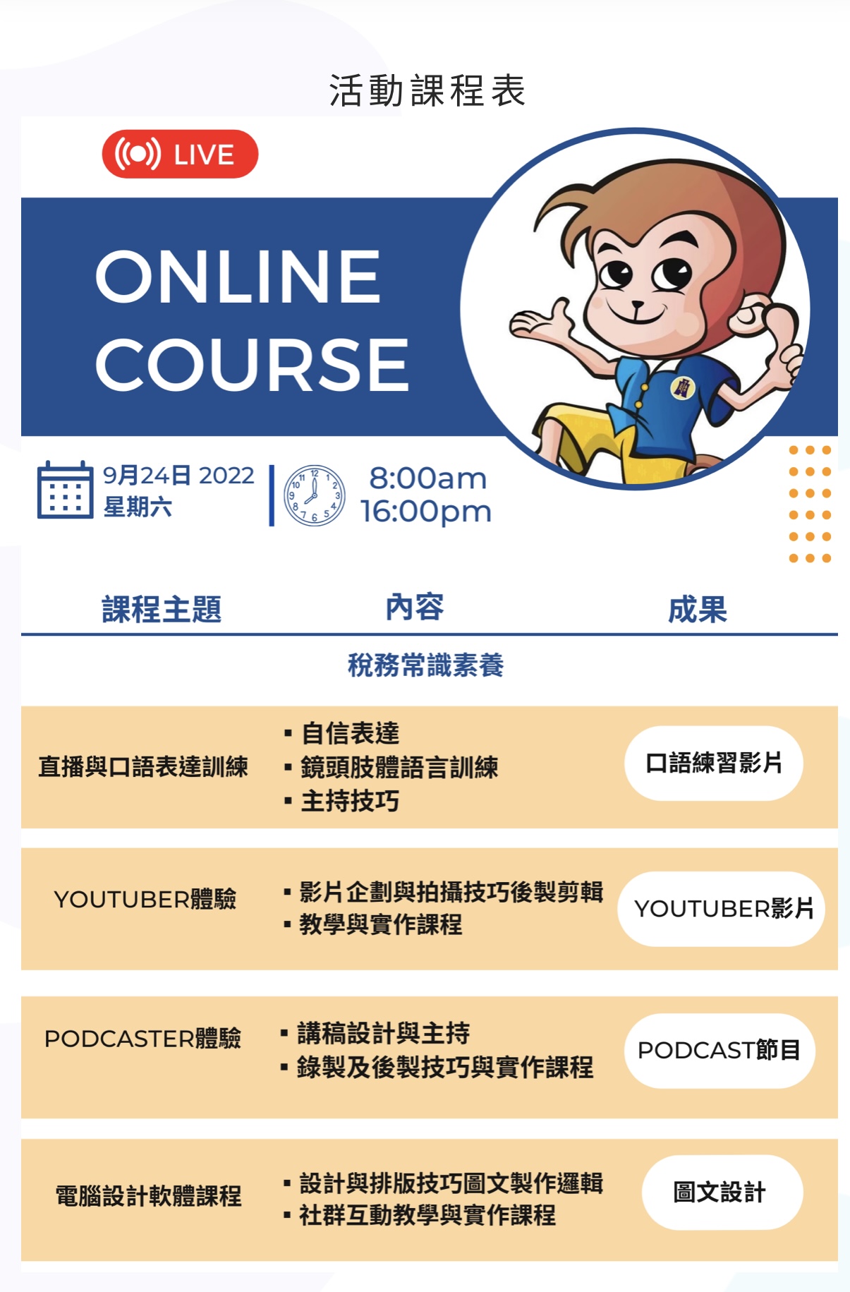 三、課程內容:直播與口語表達訓練、YouTuber體驗、Podcaster體驗及電腦設計軟體課程。