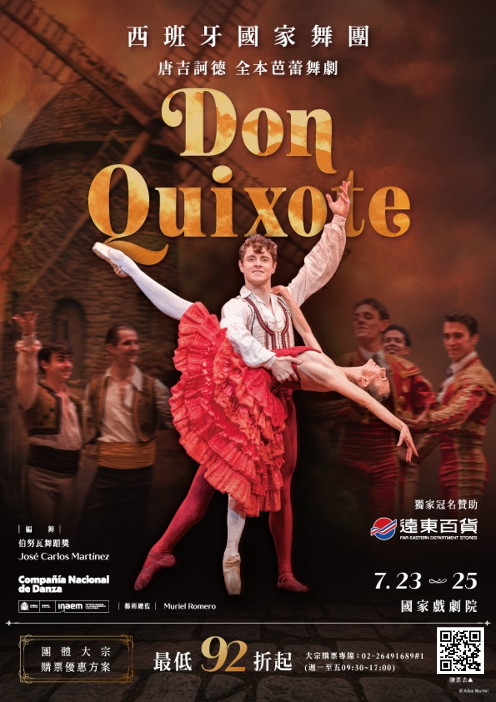 (十)此次,由「遠百獨家呈獻西班牙國家舞團攜全本芭蕾舞劇《唐吉訶德》」來台,不僅是一場國際級芭蕾盛會,更是一場跨越文學、音樂與舞蹈的西班牙文化饗宴,帶領觀眾走進《唐吉訶德》內理想與愛情交織的奇幻世界。