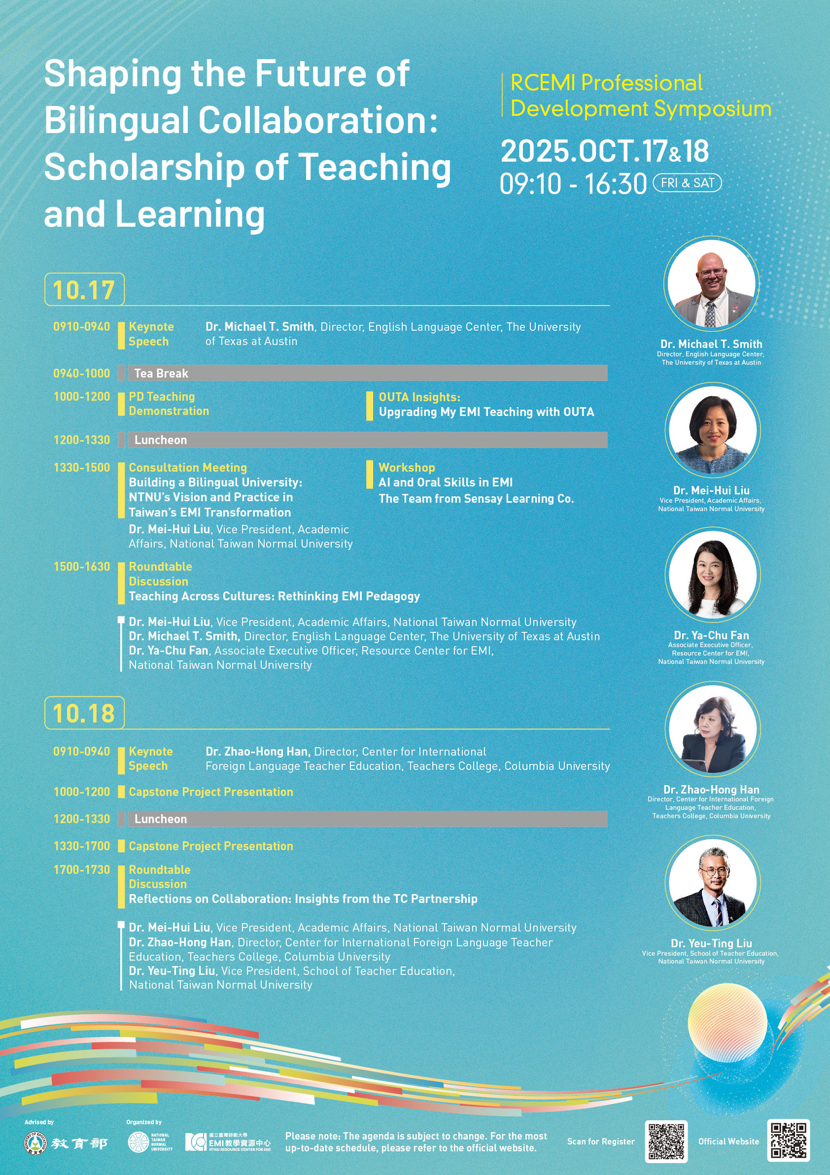 國立臺灣師範大學EMI教學資源中心114年10月「Shaping the Future of Bilingual Collaboration: Scholarship of Teaching and