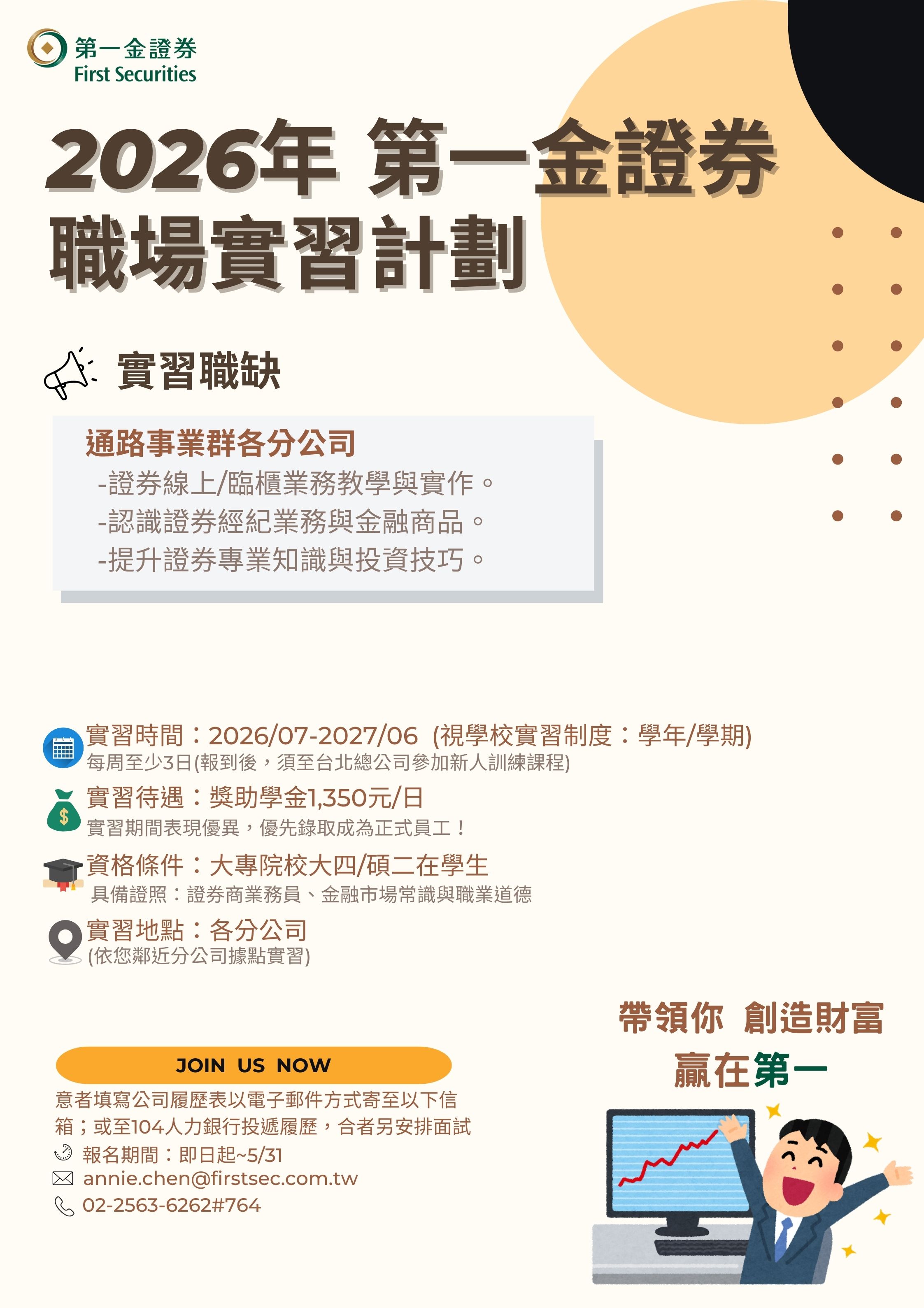 【實習公告】第一金證券-2026職場實習計畫,報名至115.05.31(日)止