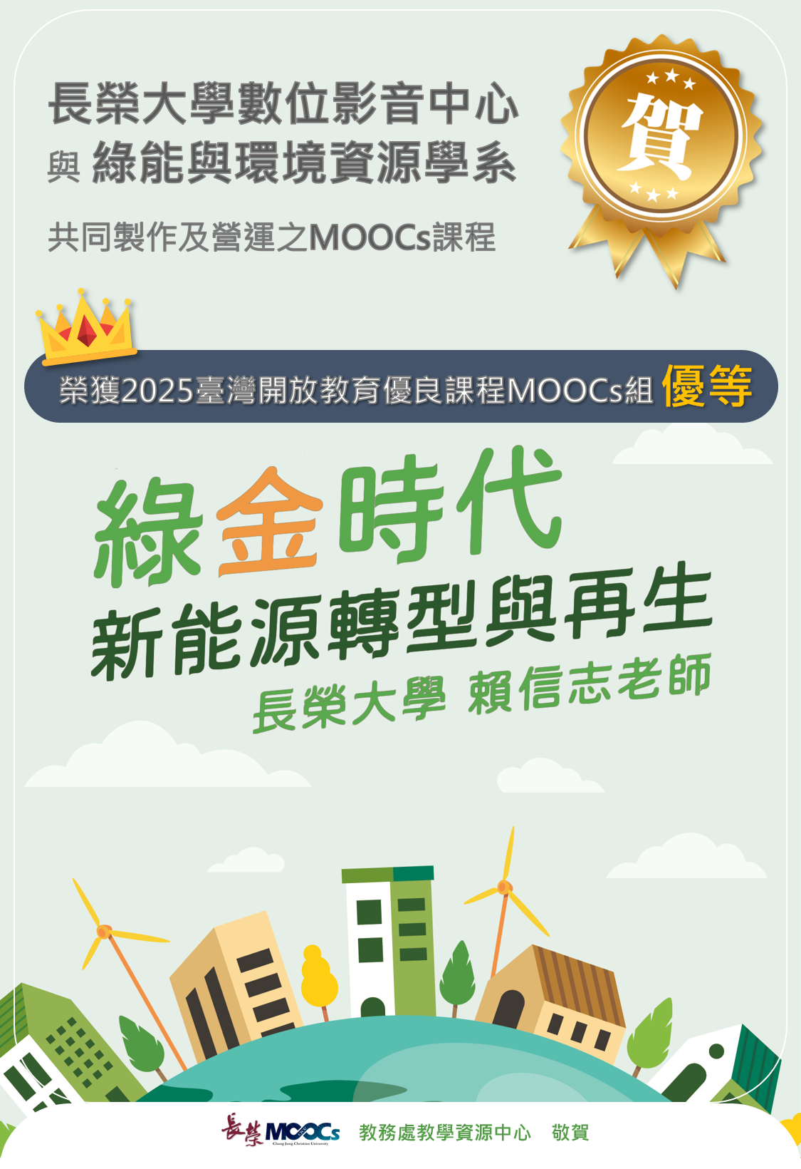 長榮大學綠能系賴信志主任榮獲「2025臺灣開放教育優良課程MOOCs組」優等獎!