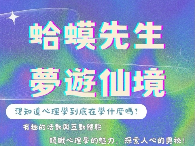 【蛤蟆先生夢遊仙境】解鎖心靈地圖!長榮大學「高中生心理探索營」奇幻登場 你是否曾好奇:為什麼我們會因為一句話感到受挫?為什麼大腦會產生壓力? 或者,你其實對「心理系」充滿嚮往,卻不知道以後畢業可以...