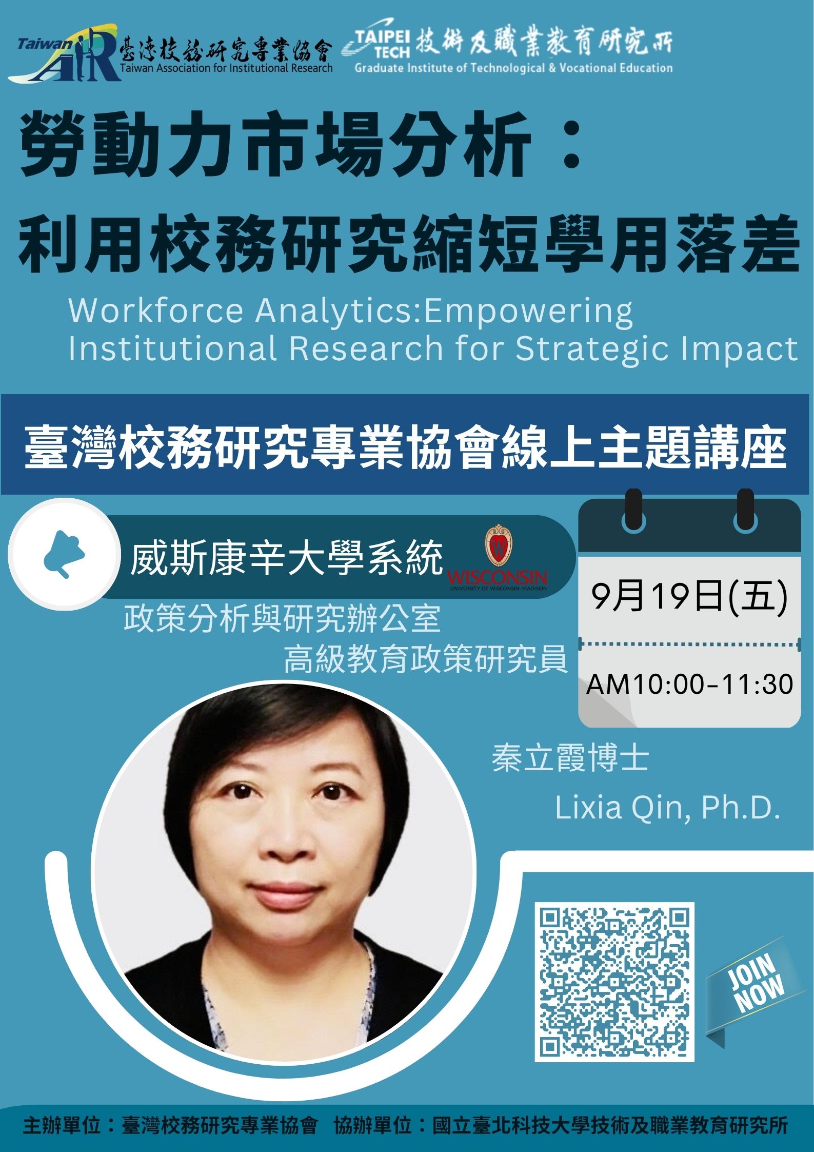 【轉知】臺灣校務研究專業協會辦理「勞動力市場分析:利用校務研究縮短學用落差」線上主題講座,敬邀參加。