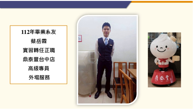 校外實習 觀餐系學生廣受好評,供不應求