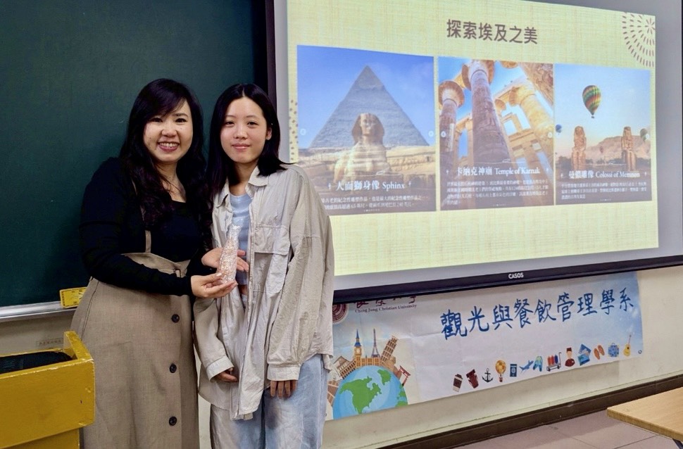 李秀卿老師以豐富的實務經驗,從遊程安排切入,深入介紹埃及旅遊的多元魅力,包括神秘宗教信仰與宏偉建築的文化意象、臥鋪火車與尼羅河河輪的特色行程、以及當地風味美食與伴手禮等,內容生動精彩,讓學生對領隊導遊實務有更一層的了解。
