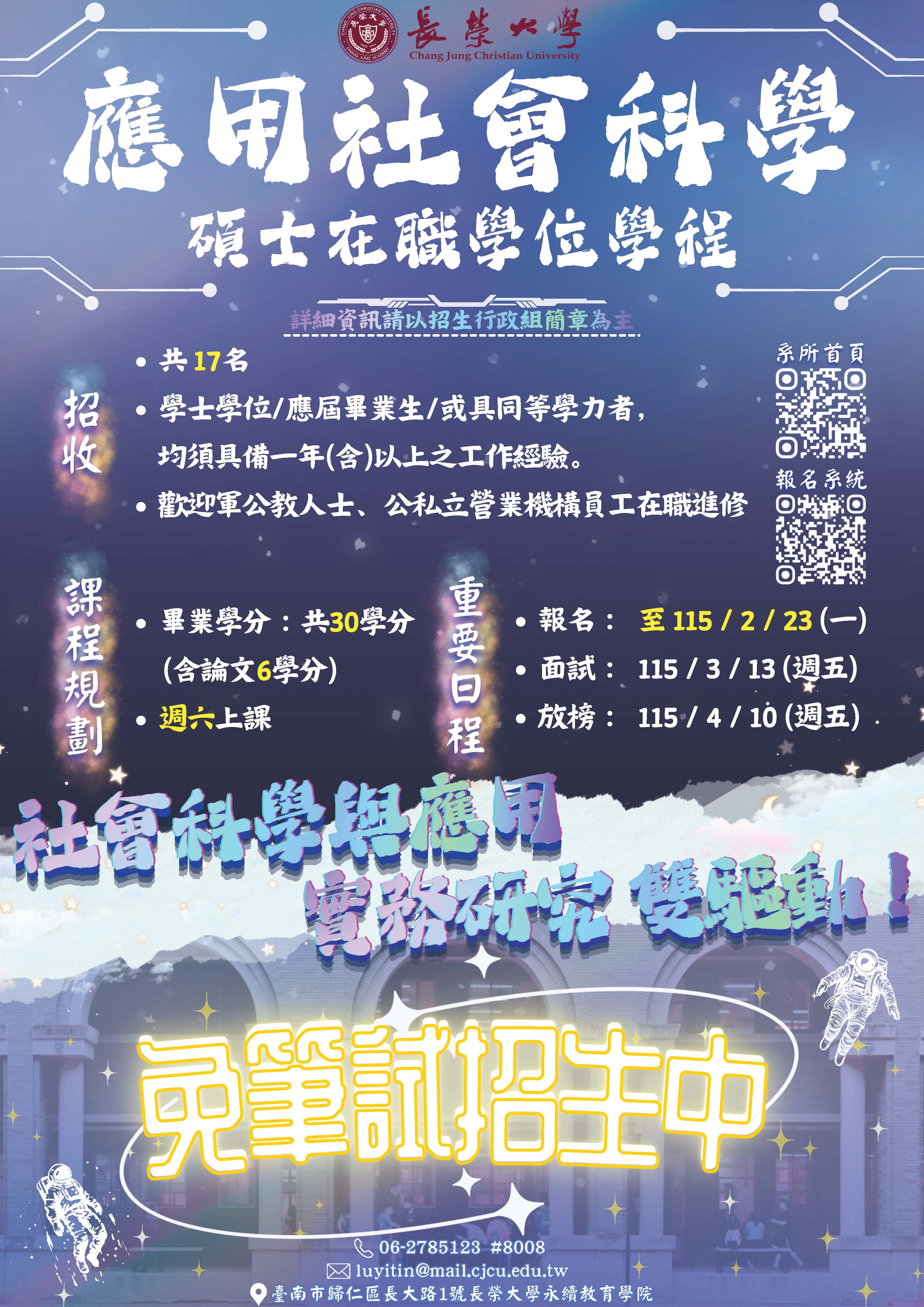 ~應用社會科學碩士在職學位學程 115學年度考試入學招生~