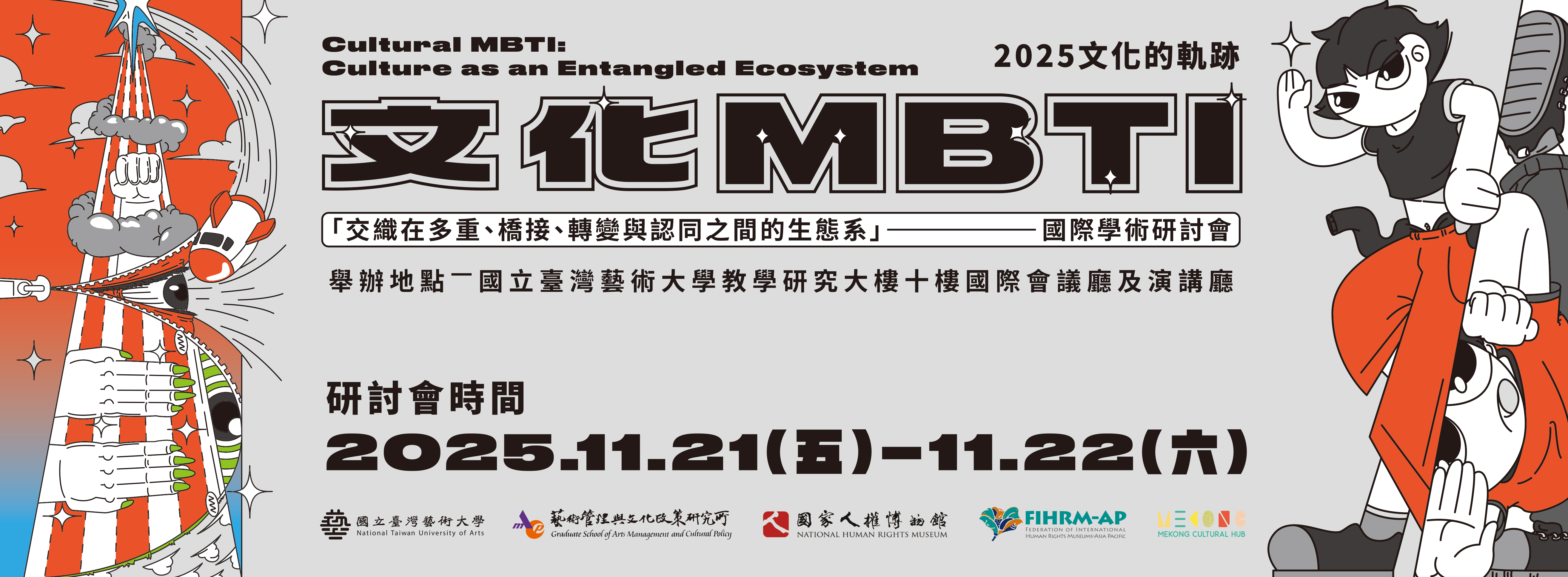 二、本次研討會以「文化 MBTI」為題,提出跨學科思考框架,探討文化在當代表現中的多重面向與生成路徑。若將文化視為具適應性與生成力的「性格型態」,我們得以跳脫單一視角,重新理解文化如何在多元處境中形構與變動。聚焦「Multiple(多重)」、「Bridge(橋接)」、「Transformation(轉變)」與「Identity(認同)」四大主題,剖析文化於不確定時代中的動態軌跡,並思考文化政策、治理與未來發展的可能方向。