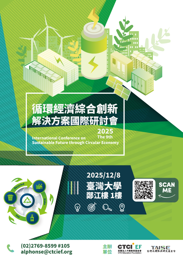一、為促進循環經濟的發展,中鼎教育基金會、國立臺灣大學,共同主辦「2025第九屆循環經濟綜合創新解決方案國際研討會」(2025 The 9th International Conference on Sustainable Future through Circular Economy)。