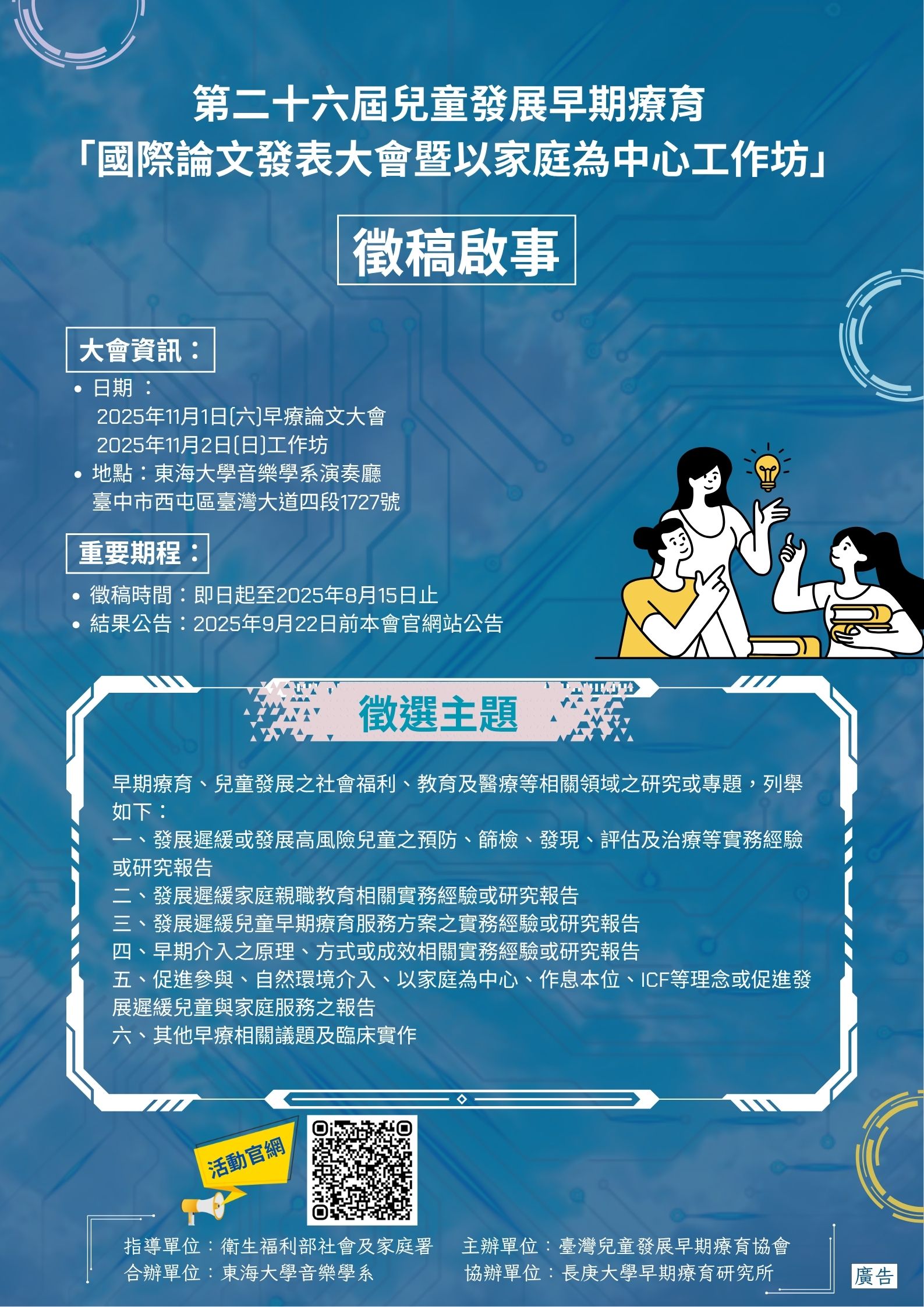 【徵稿】第26屆兒童發展早期療育國際論文發表大會暨以家庭為中心工作坊