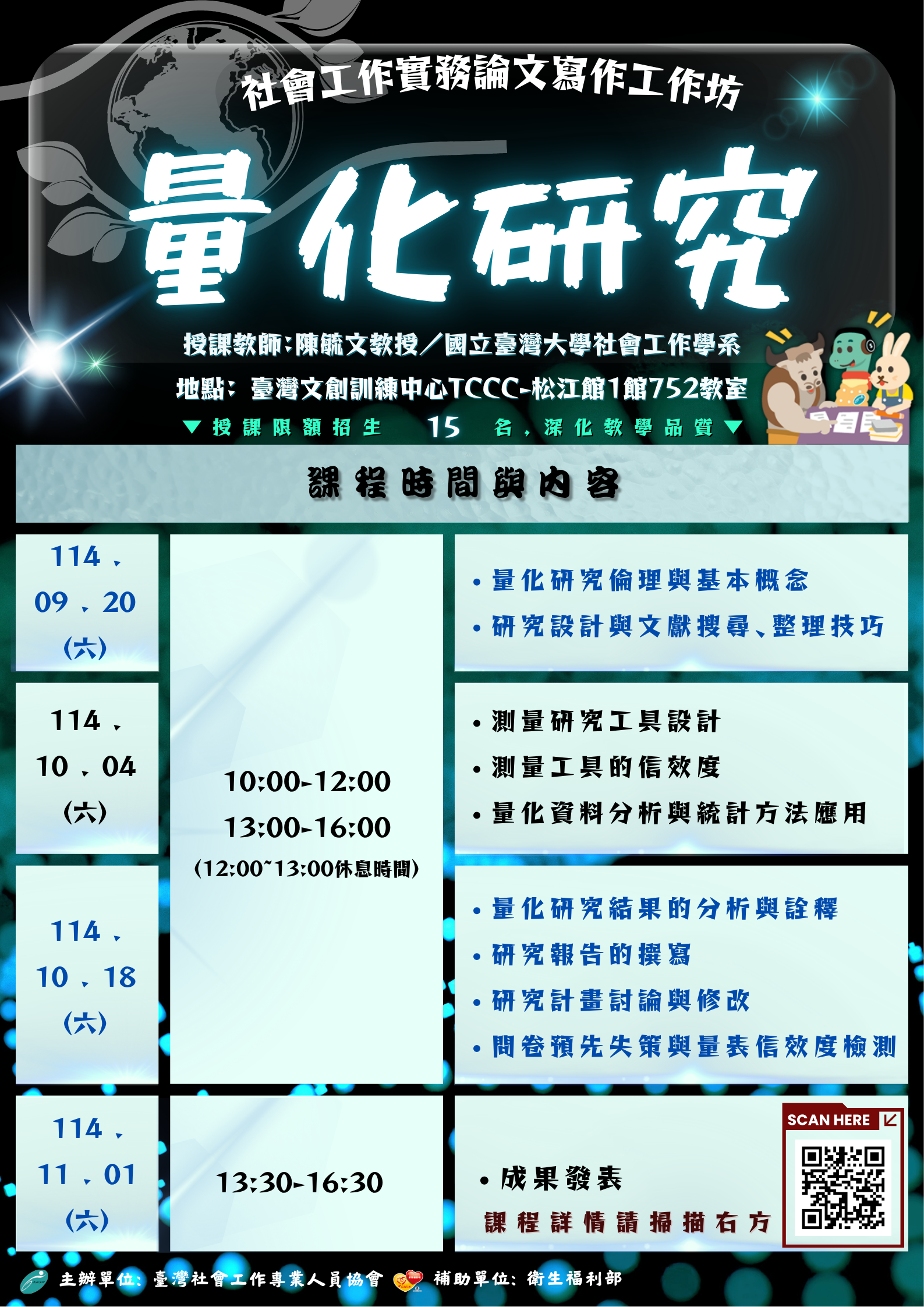 【工作坊】「社會工作實務論文寫作工作坊-量化研究」及「社會工作督導繼續教育工作坊-團體督導技巧演練」
