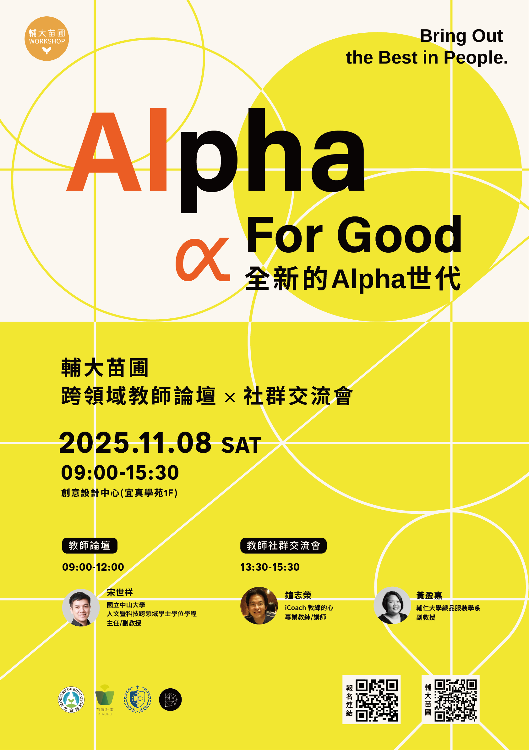 【轉知】輔大苗圃【Alpha For Good:全新的Alpha世代】跨領域教師論壇&社群交流會,敬邀教師踴躍參加。